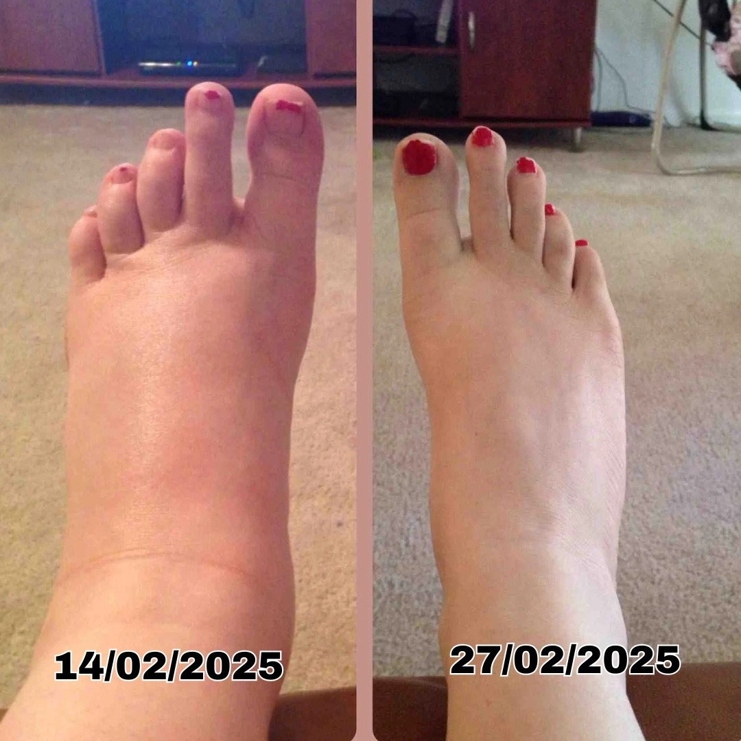 "Eu já tinha aceitado que andar com dor era meu destino... até encontrar essa solução.". Após 5 anos de dor, ela usou o aparelho por 2 semanas e relatou menos queimação nos pés e mais segurança para andar. Hoje, voltou a cuidar do jardim e dormir em paz.